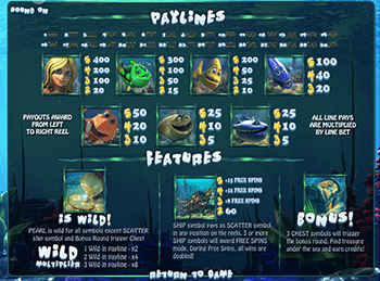 Суть игры проста. Поставив монету на одну линию (максимальная ставка 5 золотых монет), нужно собрать на барабанах максимальное количество драгоценных жемчужин, отыскивать затонувшие корабли и распахивать таинственные лари с несметными богатствами.
